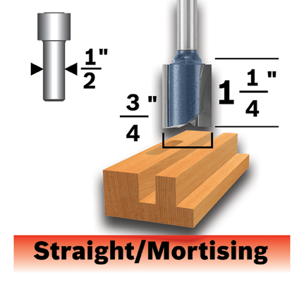 3/4 In. x 1-1/4 In. Carbide-Tipped Double-Flute Straight Router Bit