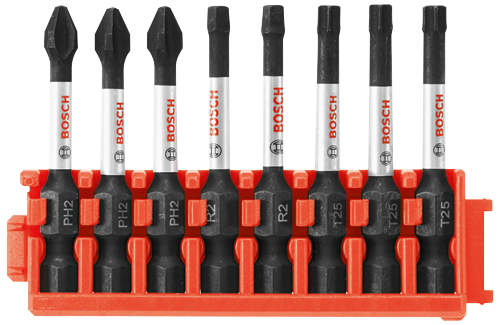 8 pc. Impact Tough™ Phillips®, Square and Torx® 2 In. Power Bits with Clip for Custom Case System
