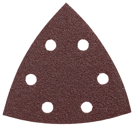 Red detail sanding triangles are for use on wood projects. Applications include multipurpose sanding on hardwoods such as oak and yellow pine or building boards like plywood.