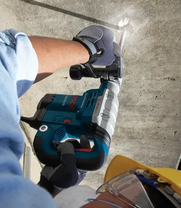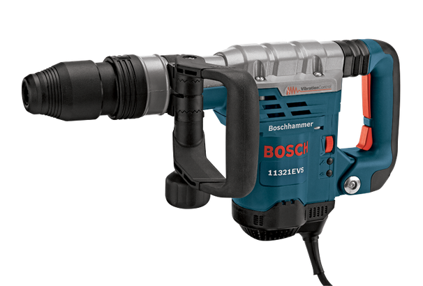 The Bosch 11321EVS SDS-max® Demolition Hammer is a 13.0 Amp tool that gets the job done, delivering 6.1 Ft.-Lbs. of impact energy and a max of 2,900 BPM. Yet it weighs only 13.7 Lbs. for outstanding power-to-weight performance, and it has Vibration Control for all-day comfort. This hammer provides Constant Response circuitry for constant power under load, as well as smooth starts and overload protection. Vario-Lock positioning permits rotating and locking the chisel with precision, while the Auto-Max™ variable-speed dial permits the operator to match power to application – from 1,300 BPM to 2,900 BPM. The SDS-max® chuck system provides tool-free bit changes, while the Service Minderlight indicates that maintenance is needed. And the demo hammer has a 360° rotating auxiliary handle and a padded rear handle for extra operator comfort.