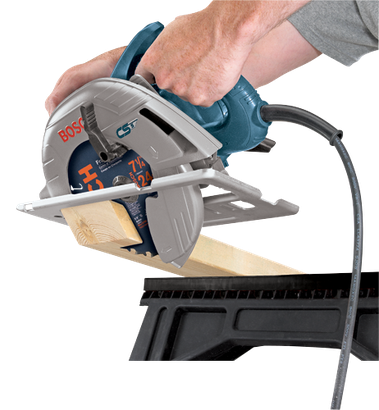 The Bosch CS5 blade-left design saw is the fastest cutting saw in it's class. Featuring a powerful 15 Amp, high output motor, Bosch's CS5 7-1/4 In. circular saw offers fast, smooth cutting at a variety of different angles. Weighing in at just 10 Lbs., the Bosch CS5 is easy to handle and comfortable to use. An unobstructed view of the cut line means better visibility for more exact cuts.