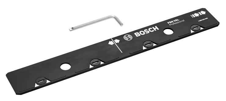 This Track Connector is a wide, sturdy piece to quickly connect tracks in the Bosch track-guidance system. The system works with the Bosch Track Saw. The FSNVEL is a top-side-installed and self-aligning connector helping to ensure precise work, even with several tracks connected. The tracks (sold separately) are precisely straight and manufactured with exacting tolerances. The track-guidance system allows precise end-to-end cuts and plunge cuts, and it is accurate and easy to work with. The track saw, along with the tracks, can make a more-easily transportable alternative to a table saw to a jobsite. The cuts are table-saw quality, with virtually no splinters.