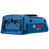 The Bosch GAA18V-48 18V USB Portable Power Adapter helps users quickly power up their other important tools – phones, tablets, and more – anywhere on the jobsite using an 18V Bosch Lithium-ion battery. The GAA18V-48 USB power adapter works with Bosch 18V Li-ion batteries delivering power to any 5V USB or 12V DC device(s), and is capable of charging two devices simultaneously. It is designed to withstand jobsite conditions and keep working. The output on this charger is 4.8 Amps, enough power to get mobile devices ready in a hurry. When simultaneously charging two devices, each output is 2.4 Amps Plus, the Bosch Portable Power adapter includes a port compatible with Bosch heated workwear, enabling users to stay warm during long cold days. The charger adapts to the device being charged, allowing for optimal charging current. while preventing overcharging by entering sleep mode once charging is complete. A metal belt clip is also included for additional storage and transportation convenience.