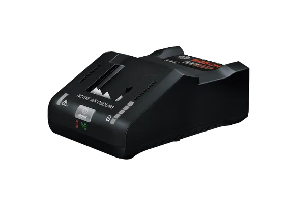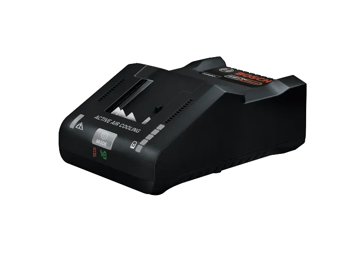 This high-power 18V, 16-amp turbo charger provides rapid charging, delivering speeds at least 70% faster than Bosch 18V Fast Chargers when used with a CORE18V® 8 Ah battery. The Bosch GAL18V-160 can recharge a depleted CORE18V® 4 Ah battery to 50% in approximately 9 minutes and a full charge in approximately 35 minutes. Additionally, it can recharge a depleted CORE18V® 8 Ah battery to 50% in approximately 15 minutes and a full charge in approximately 44 minutes. The charger is equipped with active air-cooling, utilizing two fans to optimize charging time and helps to protect the battery from overheating. An integrated mode button gives workers the option to activate Power Boost™ and Long Life charging modes. The charger features five battery charging indicator lights letting workers see charging progress from a distance. It is compatible with Bosch 18V Lithium-ion batteries.