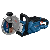 The Bosch GCS18V-230 9 In. Cutoff Saw provides powerful, efficient cuts in concrete or metal with a cutting depth of up to 3.3 inches and a 6-position guard to accommodate a variety of working angles. The powerful, brushless motor delivers corded performance in a cordless solution. Make quick wheel changes with the innovative spindle lock lever and control water usage with a convenient shut-off valve. Lightweight and ergonomic, the saw features a wraparound handle and soft grip for easier mobility and greater balance and control.