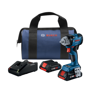 The Bosch GDS18V-230C 18V 3/8 In. Impact Wrench with Friction Ring is a compact powerhouse, with the impressive power-to-size ratio to deliver results in tight spaces. The impact wrench provides 400 Ft.-Lbs. of breakaway torque for bolt-busting performance and 230 Ft.-Lbs. of controlled max fastening torque with just a 5.7 In. head length. It’s equipped with three speed/torque settings for more precise user control. Two preset modes, including Auto Bolt Release and Auto Stop, which automatically stops tool rotation when there is a rapid reduction in resistance, help to prevent the dropping of nuts and bolts. The 3/8 In. anvil friction ring allows for quick socket changes, while the belt clip keeps the wrench within arm's reach and the LED light illuminates dimly lit work areas. The kit includes two CORE18V® 4 Ah advanced power batteries for optimal performance and runtime and one standard 18V charger.