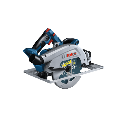 This circular saw delivers corded performance from an 18V cordless 7-1/4 In. saw. The Bosch GKS18V-25GC 18V 7-1/4 In. BITURBO Brushless™ Circular Saw has a 2-1/2 In. cut capacity, easily cutting through 2X (“two by”) material across the entire bevel range. This circ saw is part of the PROFACTOR™ System, which pairs BITURBO Brushless™ Technology with a CORE18V® High Power Battery. BITURBO Brushless™ Technology is a high-performance motor and drive-train system designed to deliver power comparable to high-demand corded tools. Its ECO mode helps get the job done by extending runtime by up to 30%. One-Touch depth-adjustment allows quick, accurate change with one hand. An onboard user interface provides speed-setting control with six settings and tool feedback. It features connectivity (module sold separately), which links users to a connected device via the Bosch PRO360 App to customize settings and receive detailed feedback. It has a 0-50° bevel range, and the auxiliary handle improves stability and handling. The saw is compatible with Bosch as well as select manufacturers’ track-guidance systems, enabling users to make straight cuts fast. It has an electronic convenience brake for less downtime between cuts and a 360° pivoting port directing dust away from the body when the saw is held in either hand.