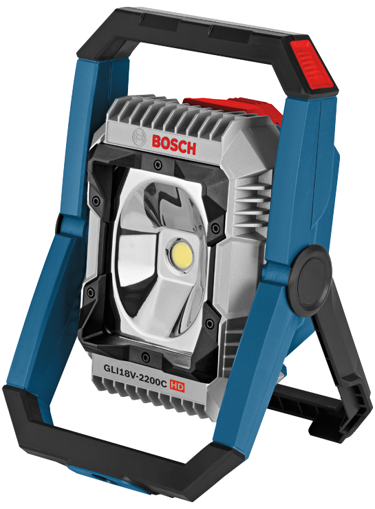 This cordless, portable floodlight with Bluetooth® provides high-powered brightness, with 2,200 lumens that deliver plenty of light for large jobsites. The Bosch GLI18V-2200C 18V Floodlight features Bluetooth® connectivity and outstanding runtime. The PRO360 App connects to the GLI18V-2200C from up to 100 Ft. away with Bluetooth®, to control the floodlight's operation. Users can turn the light on and off remotely. They can dim the light, set it on a timer, check the battery status and control groups of lights using a mobile device. It delivers great runtime provided by rechargeable Bosch 18V batteries (not included). The light provides 100 minutes of runtime per battery amp-hour at 1,000 lumens and 44 minutes per amp-hour at full brightness, enough for an entire workday. The light has an adjustable stand for versatile positioning, a 5/8 In.-11 thread mount and an IP64-rated water- and dust-resistant case for durability. This is a bare tool; the battery and charger are sold separately.