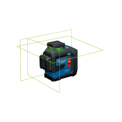 The Bosch GLL300-42GL 3.7V 360º Green-Beam Three-Plane Leveling and Alignment Laser provides an all-in-one level and alignment solution with incredible power flexibility. Versatile power options help maximize productivity and keep the laser up and running, with the ability to use with the included rechargeable 3.7V Li-Ion 3.0 Ah battery, AA batteries (sold separately) or even use while charging with the included USB-C cord. Built-in VisiMax™ technology optimizes line visibility for working conditions to further enhance accuracy and battery life. The leveling laser emits three bright green-beam laser chalk lines in 360° laser planes – one horizontal and two vertical for high-visibility and fast, streamlined job setup from one initial point. Full rubber overmold housing helps protect the level at every major impact point. IP65-rated, the laser can withstand tough, rainy conditions and is dust-tight for enhanced protection. The laser has a working range of up to 100 Ft., and the bright, vivid, thin lines provide an accuracy of 1/8 In. at 30 Ft. Further extend the range to 260 Ft. (measured at the horizontal line at 135º and 315º) with the level’s receiver compatibility (sold separately). Equipped with a Smart Pendulum System, the tool self-levels, will indicate any out-of-level condition and then locks when switched off for secure transport. Power-saving mode and brightness adjustment options help maximize runtime and battery life. Keep a handle on the laser with the rubber grip base and easily position using the ¼ In. and 5/8 In. threading mounts.