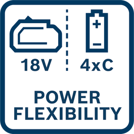 - Power flexibility – works with 4X C Cell alkaline batteries or a CORE18V® 2.0 Ah or 4.0 Ah battery (sold separately) for less downtime on the job
