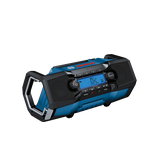 The Bosch GPB18V-2C is a portable and flexible cordless jobsite radio featuring Bluetooth® 5.0 technology. High-performance speakers featuring enhanced bass response delivers outstanding sound clarity and quality. Bluetooth® connectivity enables users to listen to their favorite music streaming service including Pandora®, Spotify® and Apple Music®, or stored songs via their mobile device (from up to 100 Ft. away). An AUX IN connection is included for MP3 players or portable satellite receivers. Additionally, the unit includes digital radio tuning with eight FM presets and four AM presets. Keeping mobile devices charged and ready is made easy with the onboard USB port. Convenient handles and hanging hook make this radio easy to carry and place on the jobsite, in a workshop, or anywhere you play. Power is provided by Bosch's 18V Lithium-ion batteries (sold separately) or the included AC/DC power adapter. It features jobsite-tough construction, and it is IP54 rated.
