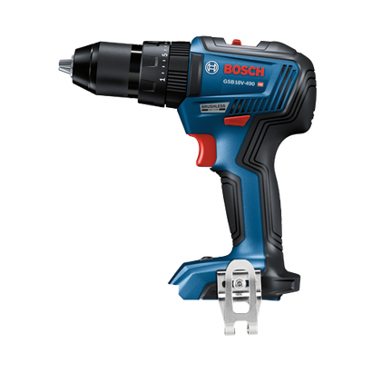 The Bosch GSB18V-490 18V EC Brushless 1/2 In. Hammer Drill/Driver is made to tackle demanding materials and applications (such as metal or masonry). This powerful hammer drill/driver features Rapid Mode Selection, to switch among hammer mode, drilling mode and driving mode, engaging a clutch with 20 precision torque settings, for reduced fastener damage. Its efficient EC Brushless motor delivers outstanding runtime and longer motor life. It generates 490 In.-Lbs. of torque and a no-load bpm of 0-22,000. This drill is variable-speed and has a two-speed gearbox, designed for high-torque driving (0-460 rpm) or high-speed drilling (0-1,800 rpm). With an upgraded, all-metal chuck, the drill has great bit hold and torque transfer. The GSB18V-490 features Bosch's Electronic Motor Protection, an LED for illumination and a belt clip. It is an easy tool to handle, with an ergonomic grip zone.