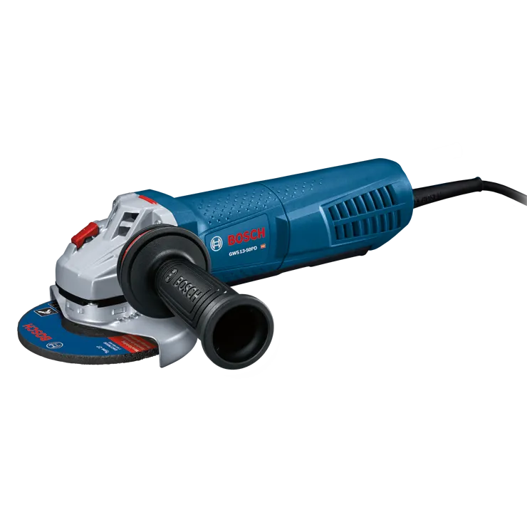 The Bosch GWS13-50PD 5- In. Angle Grinder with No-Lock-On Paddle Switch furnishes a no-lock multi-grip paddle switch for user control and comfort, while delivering 13 amps and 11,500 RPM of professional power. The paddle switch provides additional operator control, while the no-lock-on feature shuts the motor off after the switch is released. It was designed for longer life, featuring directed air flow that diverts dust away from vital components. It is equipped with a two-position Vibration Control side handle, making it less strenuous to operate. The grinder has constant electronics for easy starts and dependable speed under load, and it has direct-motor cooling for higher overload capabilities. For safety, it features an integrated acceleration sensor to limit inadvertent recoil and restart protection to protect against unintended startup. It has a burst-protection quick toolless adjustable guard and a large spindle lock for a convenient disc change. The Service Minderbrushes stop the grinder when preventative maintenance is required.