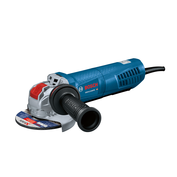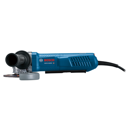 The Bosch GWX13-60PD 6 In. X-LOCK angle grinder features the X-LOCK mount, offering a wheel change that's up to five times faster than conventional interfaces. There’s an audible snap when mounting an X-LOCK wheel on an X-LOCK grinder. The wheel mounts properly without the need for a spanner wrench or flange nuts. The wheel is released from the grinder with the pull of a lever. The angle grinder delivers 13 amps of power, producing 9,300 rpm. Equipped with epoxy-coated field windings and direct-motor cooling, this grinder is built for a longer tool life. The grinder has no lock-on paddle switch, for multiple, comfortable grip positions. It shuts off motor after the switch is released. It features spiral bevel gears for smooth transmission of power. For added convenience, it is equipped with a Vibration Control auxiliary handle, constant electronics, KickBack Control and an adjustable tool-free guard.