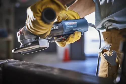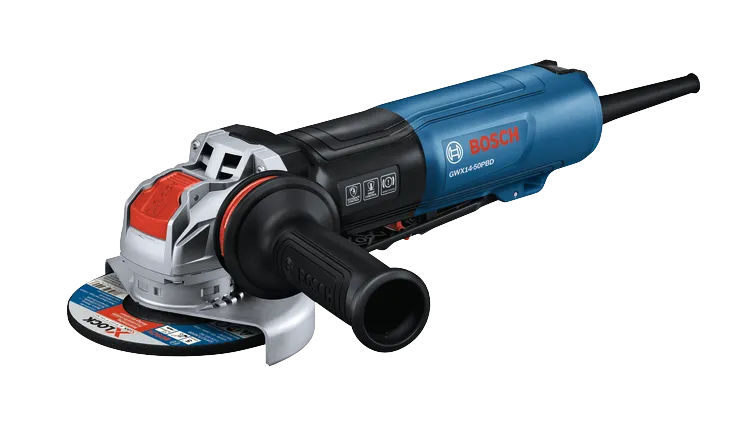 Compact yet powerful, the Bosch GWX14-50PBD 5 In. X-LOCK™ angle grinder combines high performance and comfort for grinding and cutting applications. The powerful 13-amp motor delivers 11,500 rpm for maximum performance and productivity. Complete with X-LOCK™ mount to make wheel changes up to five times faster than conventional interfaces. A narrow, lightweight design provides an outstanding power-to-weight ratio and better ergonomics. The larger paddle switch allows for various handling positions and greater control, while the brake system helps to quickly stop the wheel when the paddle is released. Fitted with an anti-vibration side handle for increased user comfort in longer applications. Engineered with KickBack Control, soft start, overload and restart protection and drop control to help turn off the grinder if accidentally dropped. Compatible with existing Bosch grinding guards and shrouds for use in a range of metal and concrete applications.