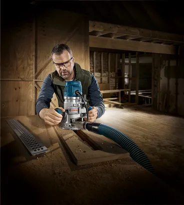 - Above-table depth adjustment when fixed base is installed in router table