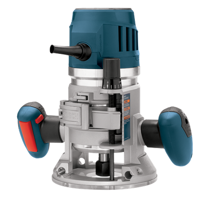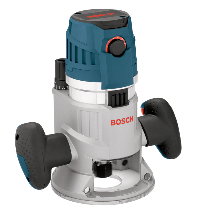 The Bosch MRF23EVS 2.3 HP Electronic Fixed-Base Router delivers optimum user control, with the trigger-controlled power system that features a power switch in the fixed-base handle. This router has the power to get results, with its 15 Amp motor and adjustable speed settings. The variable-speed dial allows the operator to set the optimal speed. The Bosch Constant Response circuitry in the motor maintains a constant speed throughout the cut, resulting in clean, accurate product. The router has microfine bit-depth adjustment, with a continuous depth range of 1-5/8 in., allowing for accurate and fast changes, while its precision-centering design allows the bit to be centered with the sub-base or optional template guides. Users can glide along the intended cutline using dovetail fixtures, templates, jigs and other guidance devices.