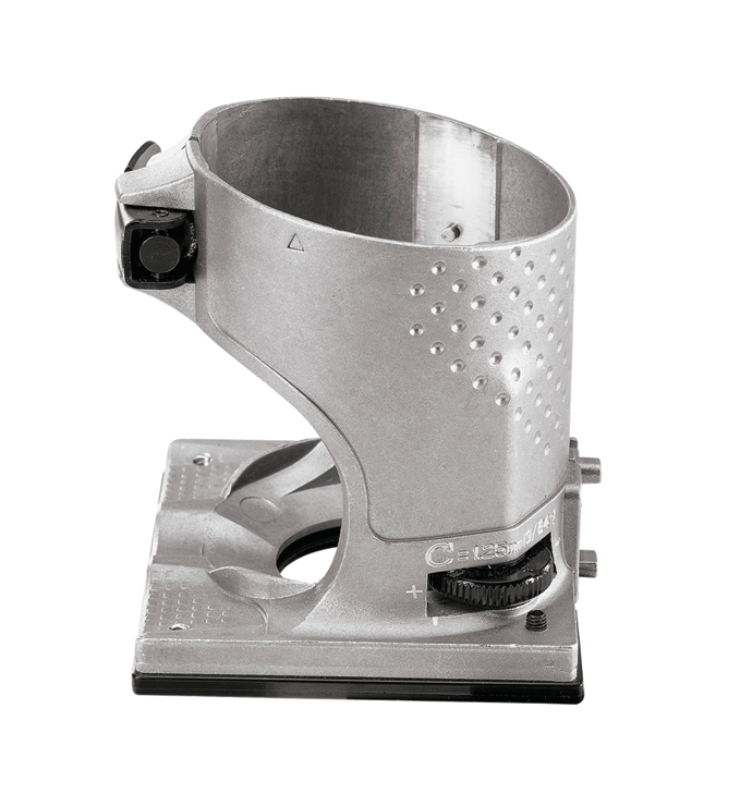 The PR001 is the Fixed Base for the PR10E and PR20EVS Bosch Palm Routers. It features a comfortable grip. The depth adjustment system features a quick-release clamp and both macro- and micro-fine depth adjustment systems.