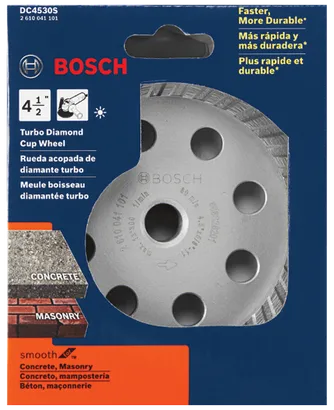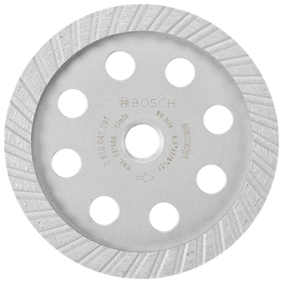 - Turbo Diamond Cup Wheel provides controlled material removal and a smooth final grind for concrete