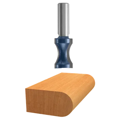 - La broca con punta de carburo para crear bordes convexos ofrece un alto desempeño de corte para rebajar bordes convexos