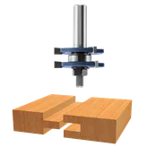 - Ensamblaje completo usado para cortar la lengüeta; el corte de la ranura se puede hacer ajustando la altura de la broca para rebajadora