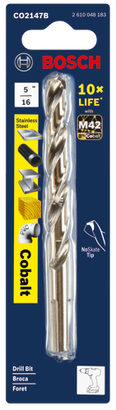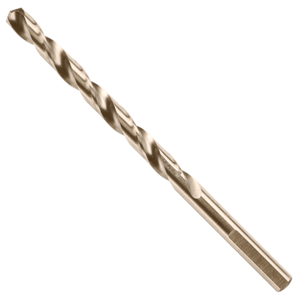- Broca de cobalto M42: brocas de longitud estándar hechas de cobalto M42 perfeccionado diseñadas para una mayor durabilidad, resistencia a altas temperaturas y con una superficie endurecida para acero inoxidable, hierro fundido, titanio, metales de calibre ligero y aluminio