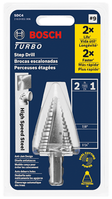 - Diseño de brocas escalonadas para herramientas inalámbricas: diseñadas para un taladrado óptimo con taladros inalámbricos a velocidades altas y bajas, con 2 bordes de corte y escalones con ángulos optimizados
