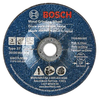Disco abrasivo para amolar metal, calibre 30, tipo de eje 27, 3" x 1/8" x 3/8"