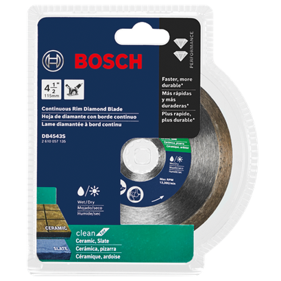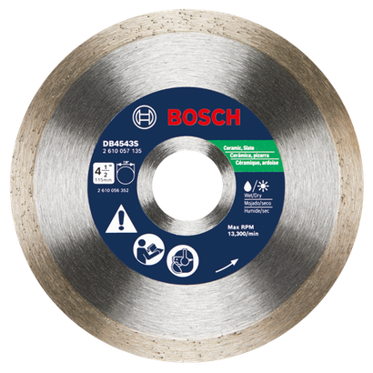 - Los discos de diamante abrasivo con borde continuo estándar proporcionan cortes confiables en azulejos