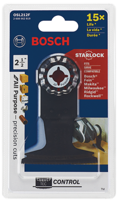 - Las hojas de corte por inmersión bimetálicas para herramienta oscilante multiuso Starlock® ofrecen una larga vida útil para cortes en madera y metal no endurecido