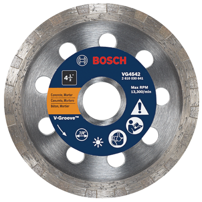 - Las hojas de diamante para ranuras en V y bordes segmentados proporcionan cortes excepcionales para limpiar, rebajar y reparar grietas en concreto