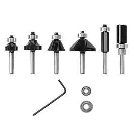 Los juegos de brocas para rebajadora de 3, 6, 10, 15 y 30 piezas de Bosch ofrecen a los carpinteros precisión y versatilidad para una gran variedad de proyectos. Con un tamaño de 6 mm a 1/4", son adecuadas para su uso en rebajadoras de mano o portátiles y en proyectos con madera blanda o maciza.
