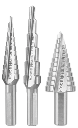 - La broca escalonada HSS realiza perforaciones sin complicaciones en varios diámetros con una sola broca