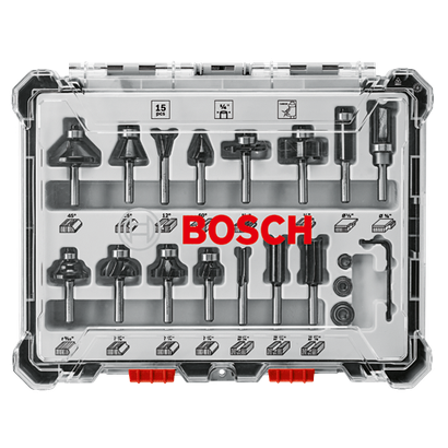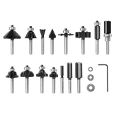 | RBS015MBS | Brocas para biselar: (1) 1-3/8" x 45°, (1) 1" x 25°; Broca para cola de milano: (1) 12° x 9/16"; Broca para ranuras en V: (1) 60° x 5/8"; Fresa para ranurar de dos alas: (1) 5/32"; Broca de rebajo: (1) 1/4" x 1/2"; Broca recta montada arriba: (1) 1/2" x 1"; Broca de acabado en laminado y ranura doble para cortar al ras: (1) 5/8" x 1"; (1) Broca para moldura romana: (1) 5/32" x 1/2"; Broca para calar: (1) 3/8" x 1/2"; Broca para redondeado: (1) 1/4" x 1/2", (1) 1/8" x 3/8"; Broca recta de ranura doble: (1) 1/4" x 25/32", (1) 1/2" x 1-3/16", (1) 5/8" x 1-3/16" | - | 15 | |||