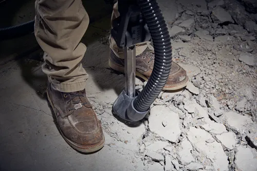 El martillo demoledor Brute BH2760VCB de Bosch pesa tan solo 63 lb, pero brinda 1.000 BPM y 35 ft-lb de energía de impacto, lo que lo convierte en una potente herramienta eléctrica, con la mejor tasa de extracción de concreto de su clase. Está listo para trabajar en aplicaciones tan pesadas como trabajos de cimentación y tendido de tuberías. El martillo demoledor con carretilla incluida es portátil y opera con AC/DC de 115/120 V, tomacorrientes de 15 A o generador portátil de 2.500 vatios; no se necesita compresor. Gracias al sistema Active Vibration Control de Bosch para mayor confort de uso, permite trabajar más tiempo y obtener así más resultados. El sistema de escobillas Service Minder apaga la herramienta cuando necesita mantenimiento preventivo.