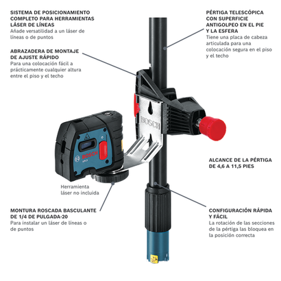Poste telescópico BP350 de Bosch con montaje láser de 1/4" x 20".