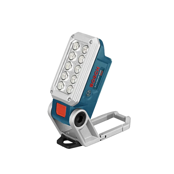 La luz de trabajo LED de 12 V máx. FL12 de Bosch brinda la iluminación de trabajo más brillante de su clase, con 10 luces LED de alta intensidad. Es ideal para profesionales que necesitan iluminación de manos libres. Los usuarios pueden encender un proyector de alta intensidad sobre un área específica donde la necesiten. O se puede mantener presionado el botón de encendido para activar una función de menor intensidad que duplica el tiempo de ejecución de la luz en cualquier batería de 12 V máx. de Bosch. Esta luz tiene una articulación de 200°, dos potentes imanes, un clip mosquetón, un tornillo con cuerda de 1/4" compatible con un tripié estándar y una armella abierta, todo lo cual facilita colocar la luz de trabajo. Tiene una extensa autonomía y según la capacidad de la batería, puede funcionar hasta 12 horas consecutivas. La unidad es robusta, debido a su carcasa resistente y los tres LED.