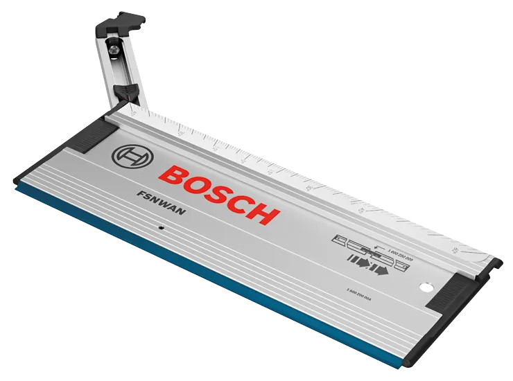 Esta guía de ingletes para rieles es un accesorio que permite alinear rieles de sierra de Bosch en el lugar de trabajo para formar ángulos precisos. Al colocar el brazo pivotante del FSNWAN de Bosch en contacto con la pieza de trabajo, el usuario puede pilotar y fijar un fragmento corto e integrado del riel en el ángulo deseado (hasta 60º a la izquierda y 45º a la derecha). El riel de guía está diseñado para conectarse con otros rieles de Bosch mediante el conector de rieles FSNVEL (estos componentes adicionales se venden por separado). La sierra de incisión Bosch, en conjunción con los rieles, puede suponer una alternativa más fácil de transportar al lugar de trabajo que una sierra de mesa. Ofrece cortes de calidad equiparable a los de una sierra de mesa, prácticamente sin generar virutas.