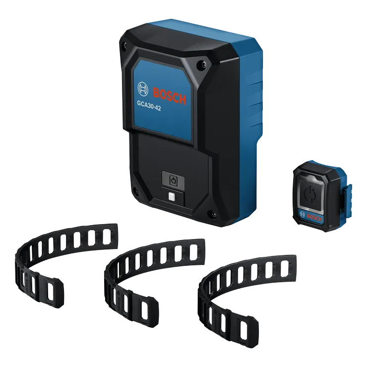 El sistema de arranque automático con control de polvo Bluetooth® GCA30-42K de Bosch elimina la necesidad de arrancar y parar manualmente una herramienta eléctrica de 18 V emparejada y un extractor de polvo con cable, lo que ayuda a aumentar la productividad del usuario y a reducir su fatiga mientras trabaja. El transmisor remoto de arranque automático Bluetooth® GCT30-42 se puede sujetar con bandas de sujeción ajustables (se incluyen) tanto a las herramientas eléctricas de 18 V para concreto, tablarroca y carpintería de Bosch como a las de la competencia, y puede conectarse a un extractor de polvo con cable. El transmisor detecta cuándo se enciende o se apaga la herramienta eléctrica, y hace que el receptor GCA30-42 del extractor de polvo se ponga en marcha o se detenga automáticamente. Aunque la función de arranque automático hace que su uso sea intuitivo y sencillo, el transmisor remoto también puede arrancar o parar manualmente el extractor de polvo si es necesario. Un indicador de estado LED brillante y muy visible muestra el estado de la conexión entre el receptor y el transmisor remoto (establecida, débil o desconectada), incluso en zonas de trabajo con poca iluminación. El transmisor remoto de arranque automático Bluetooth® GCT30-42 es resistente al agua y al polvo gracias a la protección IP54, por lo que se puede utilizar en lugares de trabajo con condiciones arduas. El sistema de arranque automático con control de polvo Bluetooth® incluye el receptor GCA30-42, el transmisor remoto de arranque automático Bluetooth® GCT30-42, tres bandas de sujeción y una pila de botón de 3 V.