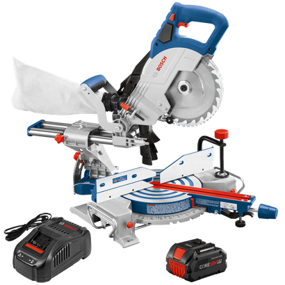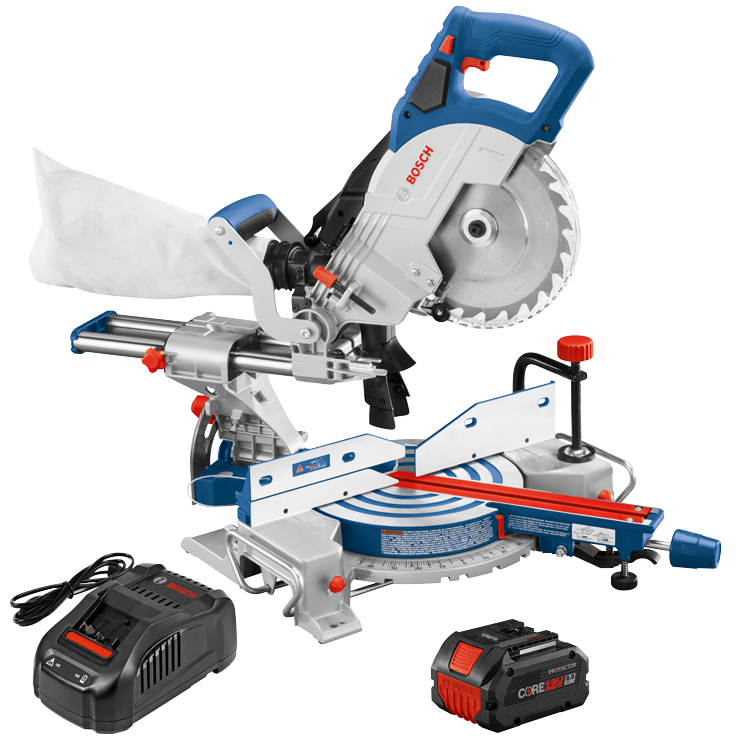 Esta sierra ingleteadora sin escobillas de Bosch combina una capacidad de corte profesional con una portabilidad inigualable para ofrecer una auténtica solución móvil e inalámbrica en el lugar de trabajo. La GCM18V-08 de 8-1/2" es una sierra ingleteadora compuesta deslizante con bisel simple que ofrece una capacidad de corte con corona anidada de 3-5/8", capaz de cortar desde 47° a la izquierda hasta 47° a la derecha del tope, lo cual es un rango extraordinario para una sierra ingleteadora inalámbrica de 8-1/2". Su peso manejable de 31.5 lb (solo la herramienta, sin incluir la batería) permite que esta sierra sea fácil de portar y a la vez ofrece una capacidad de corte transversal de 10-5/8". En las pruebas, la sierra ha realizado 377 cortes por carga con una batería High Power CORE18V®. El kit incluye una batería High Power CORE18V® de 8 Ah, que ofrece un 100 % más de tiempo de ejecución y una potencia un 75 % mayor que la batería CORE18V® de 4 Ah en aplicaciones exigentes. Gracias al sistema exacto de guía láser alinea con precisión la línea de corte a la hoja. La sierra está diseñada con barras deslizantes centradas con precisión, que le permiten deslizarse suavemente y sin complicaciones. Incorpora un conducto para polvo y una bolsa para polvo que le permiten recoger el polvo con eficacia.