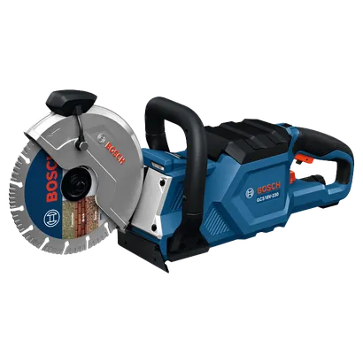 La sierra de corte Bosch GCS18V-230 de 9" proporciona cortes potentes y eficientes en concreto o metal con una profundidad de corte de hasta 3.3" y una protección de 6 posiciones para adaptarse a una variedad de ángulos de trabajo. El potente motor Brushless sin escobillas ofrece un desempeño similar al de una herramienta con cable en una solución inalámbrica. Realice cambios rápidos de disco con la innovadora palanca de bloqueo del eje y controle el uso de agua con una conveniente válvula de cierre. Ligera y ergonómica, la sierra cuenta con un mango envolvente y un agarre suave para una mayor movilidad y mejor equilibrio y control.