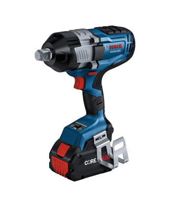 La llave de impacto de torque alto PROFACTOR™ GDS18V-1180C Connected-Ready de 3/4" con anillo de fricción y agujero pasante de Bosch está diseñada para liberar y atornillar con rapidez pernos, tuercas y anclajes en aplicaciones de maquinaria pesada. La llave, que es una potente herramienta de apriete, proporciona hasta 1,620 ft-lb de torque de arranque para un mayor rendimiento y 1,180 ft-lb de torque máximo de apriete controlado. Esta llave inalámbrica cuenta con tres ajustes de velocidad/torque (0-800/1,300/1,750 rpm) para un control más preciso por parte del usuario, incluso al acometer tareas exigentes. Los modos predefinidos, la ralentización automática, el apagado automático y la liberación automática de pernos ofrecen una mayor versatilidad, y hay disponibles modos y personalizaciones adicionales a través de la aplicación PRO360 de Bosch. La liberación automática de pernos detiene la rotación cuando no hay carga en la herramienta para ayudar a evitar la caída accidental de pernos y tuercas durante la extracción. El módulo de conectividad de herramientas GCY42 Bluetooth® (a la venta por separado) permite al usuario una mayor conexión con el control y la personalización de herramientas de última generación, comprobar el estado de la herramienta y de la batería, recibir alertas sobre un problema de la herramienta y mucho más. El aro de fricción permite cambiar rápidamente los dados, mientras que el agujero pasante proporciona una retención segura del dado. La funda de goma extraíble incluida ayuda a proteger la herramienta y la superficie de trabajo y la luz LED ilumina las zonas de trabajo poco iluminadas. El kit incluye dos baterías CORE18V® High Power de 8 Ah para una productividad y autonomía óptimas.
