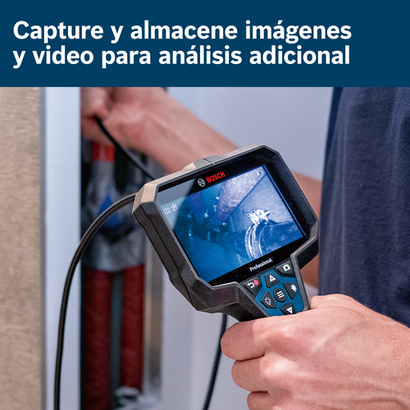 La cámara de inspección portátil conectada de 12 V máx. y 11.5 pies GIC5-27C de Bosch cuenta con una pantalla de 5" de alta resolución y fácil de ver, lo que asegura una inspección profunda y detallada en cada momento. El cable de la cámara de 11.5 pies ayuda a navegar por espacios reducidos en el lugar de trabajo. Al igual que una brújula, la herramienta viene equipada con un indicador de orientación, lo que permite centrarse en la tarea que se está realizando en lugar de en qué extremo está arriba. Fáciles de usar, el teclado y el menú están diseñados para un manejo intuitivo del producto, con botones sencillos y claramente marcados para ajustar la vista de la cámara y la iluminación. Permite capturar tanto fotos como video para una documentación exhaustiva y un análisis posterior. Con la destacada conectividad integrada, es posible transferir archivos fácilmente a través del cable USB-C incluido y visualizarlos de manera rápida en la galería. Diseñado para mayor comodidad, el mango ergonómico del dispositivo minimiza la fatiga de la mano para inspecciones más largas. La carcasa de goma en conjunto con las clasificaciones IP67 (cable de la cámara) e IP54 (herramienta, no incluye la batería ni el compartimento de la batería) ofrecen una mayor protección en el trabajo. La cámara de inspección se alimenta eficazmente con el sistema de baterías Bosch de 12 V máx. para una confiabilidad duradera.