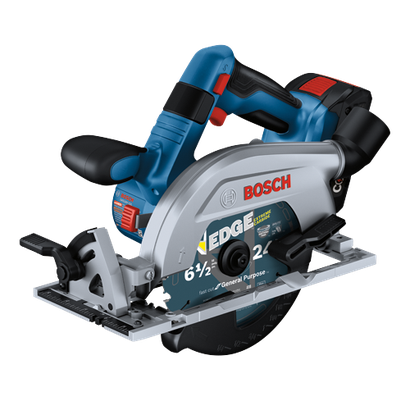 Esta sierra circular posee una capacidad de corte de 2-1/4", lo que le permite cortar materiales de 2X (dos por) en cualquier grado de alcance de bisel. La sierra circular con hoja a la izquierda GKS18V-22L de 6-1/2" y 18 V de Bosch presenta un motor Brushless sin escobillas que proporciona un tiempo de funcionamiento eficiente y 5,000 RPM con confiabilidad profesional. Esta sierra compacta pesa únicamente 6.1 lb (solo herramienta, sin incluir batería). El diseño de esta sierra con hoja a la izquierda proporciona una visión más clara de la hoja para una mejor visibilidad de la línea de corte cuando se sostiene en la mano derecha. Cuando se sujeta con la mano izquierda, proporciona un gran equilibrio y control para los cortes transversales. El mango auxiliar mejora la estabilidad y el manejo de la herramienta, tanto con la mano izquierda como la derecha. Los cómodos calibradores de profundidad de la sierra son visibles desde cualquier lado de la misma y cuenta con un rango de bisel de 0-50 grados, con topes a 0, 45 y 22.5 grados. Cuenta con dos prácticos medidores de profundidad: uno en la protección inferior y otro en la carcasa para que la profundidad sea visible a cada lado de la sierra. Tiene un cómodo freno electrónico que ayuda a disminuir el tiempo de inactividad entre cortes. El puerto pivotante de 360° aleja el polvo del cuerpo cuando se sujeta la sierra con cualquier mano. La sierra también incorpora un LED de línea de corte que ilumina el área de corte de la pieza de trabajo, mejorando así la visibilidad de la línea de corte. Incluye una llave integrada para cambio de hoja y un bloqueo de eje para facilitar el cambio de las hojas. El kit incluye dos baterías Advanced Power CORE18V® de 4 Ah, cada una de ellas ofrece un tiempo de ejecución dos veces superior en comparación con la batería BAT612 de 2 Ah de la generación anterior.
