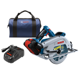 Esta sierra circular inalámbrica de 18 V y 7-1/4" ofrece un desempeño comparable al de las herramientas con cable. La sierra circular GKS18V-25C BITURBO Brushless™ de 18 V y 7-1/4" de Bosch posee una capacidad de corte de 2-1/2", lo que le permite cortar con facilidad materiales de 2X (dos por) en cualquier grado de alcance de bisel. Esta sierra circular forma parte de PROFACTOR™, un sistema que combina la tecnología BITURBO Brushless™ con una batería High Power CORE18V®. La tecnología BITURBO Brushless™ consiste en un motor de alto desempeño y un sistema de transmisión diseñado para generar una potencia comparable a las herramientas con cable más exigentes. La sierra incorpora funciones de conectividad (el módulo se vende por separado), que vincula a los usuarios con un dispositivo conectado a través de la aplicación PRO360 de Bosch para recibir información detallada. Cuenta con un grado de alcance del bisel de 0-50°, mientras que el mango auxiliar mejora la estabilidad y el manejo. Incorpora un freno electrónico de conveniencia para reducir el tiempo de inactividad entre cortes y un puerto pivotante de 360° que aleja el polvo del cuerpo al sujetar la sierra con cualquier mano. El kit incluye una batería High Power CORE18V® de 8 Ah, que ofrece un 50 % más de tiempo de ejecución y una potencia un 75 % mayor que la batería CORE18V® de 4 Ah para ofrecer potencia en aplicaciones exigentes.