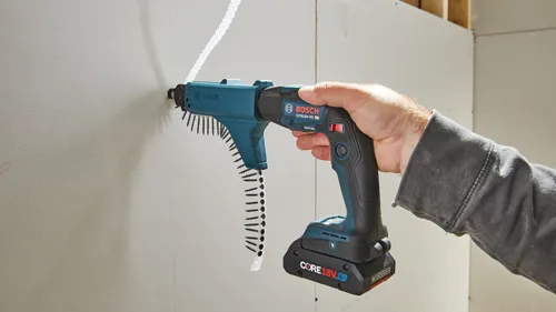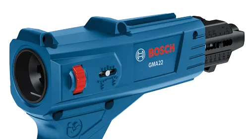 Este accesorio de autoalimentación está diseñado para la pistola atornilladora eléctrica para tablarroca GTB18V-45 de Bosch. El GMA22 permite fijar con precisión filas de tornillos a máxima velocidad a la vez que permite realizar un trabajo continuo y cómodo con mayor eficacia. Permite una fijación rápida y repetitiva sin tener que cargar cada tornillo manualmente. Tiene un diseño ergonómico y es extremadamente ligero. El accesorio de atornillado para tablarroca presenta un diseño abierto para ayudar a evitar que los residuos queden atrapados en el mecanismo, lo que permite una mayor vida útil del producto. El GMA22 usa tiras de tornillos habituales en el mercado. Estos tornillos tienen longitudes de entre 1" (25 mm) y 2-1/8" (55 mm), diámetro del vástago de tornillo de hasta 0.2" (5 mm) y diámetros de cabeza de tornillo de hasta 3/8" (9.5 mm). La pistola atornilladora eléctrica ergonómica GTB18V-45 de Bosch consigue que los trabajos de paneles de yeso (tablarroca) se realicen de forma cómoda y rápida. Tiene una empuñadura bien equilibrada que permite que el pulgar y el dedo índice controlen el funcionamiento y Xtend Drive para activar el motor solo cuando la broca detecta presión.