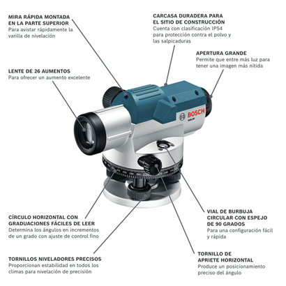 - Receptáculo de burbuja circular con espejo de 90 grados para un ajuste rápido y sencillo