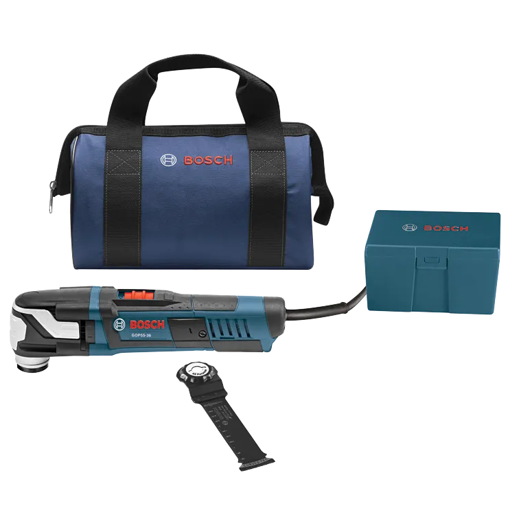 El juego de herramienta oscilante multiuso StarlockMax®® GOP55-36B de Bosch ofrece una herramienta que incorpora el adaptador de accesorios para la nueva generación de herramientas 3D Starlock®. Este adaptador ofrece el mejor agarre de accesorios de su clase, lo cual genera una transmisión extrema de fuerza gracias al motor de 5.5 A. Con una mayor superficie de contacto entre la herramienta y el accesorio, el adaptador Starlock es una conexión cóncava para accesorios de herramientas 3D que ofrece una transferencia de torque inigualable. Esta herramienta alcanza una velocidad de hasta 20.000 OPM y ofrece un arco oscilante de 3.6° de ancho, para una mayor productividad de corte, amolado, raspado y otras tareas. El sistema de cambio de hoja sin contacto facilita el acoplamiento, retirada o recolocación de las hojas. Un dial de velocidad variable permite al usuario ajustar la velocidad óptima para cada tarea, mientras que el circuito Constant Response mantiene la velocidad deseada bajo carga. Esta herramienta de construcción robusta tiene engranajes reforzados para una mayor durabilidad y menos vibraciones. Con menos de cuatro lb de peso, esta herramienta oscilante ofrece una relación potencia/peso insuperable. Puede acceder a espacios reducidos y ofrece zonas de agarre cómodas y ergonómicas. El GOP55-36 ofrece una versatilidad excepcional y es compatible con todos los accesorios Starlock y StarlockPlus®®, además de los accesorios de calidad industrial StarlockMax® para aplicaciones extremadamente exigentes.