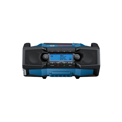 La radio inalámbrica para el lugar de trabajo GPB18V-2C de Bosch es portátil y flexible y cuenta con tecnología Bluetooth® 5.0. Los altavoces de alto rendimiento con respuesta mejorada a sonidos de baja frecuencia ofrecen una calidad y claridad de sonido excepcional. La conectividad Bluetooth® permite a los usuarios escuchar lo que reproduzcan desde su dispositivo móvil; por ejemplo, la música de su servicio de streaming favorito, como Pandora®, Spotify® y Apple Music®, o las canciones que hayan guardado en él (siempre y cuando se encuentren a una distancia máxima de 100 ft). Se incluye una conexión auxiliar para reproductores de MP3 o receptores de satélite portátiles. Además, la unidad incluye un sintonizador de radio digital con ocho frecuencias FM y cuatro AM ya sintonizadas. El puerto USB integrado permite mantener fácilmente los dispositivos móviles cargados y listos para usar. El asa y el gancho para colgarla hacen que sea fácil de transportar y colocar en el lugar de trabajo, en el taller o en cualquier otro lado. Se puede utilizar con baterías de iones de litio de Bosch de 18 V (a la venta por separado) o con el adaptador de corriente CA/CC incluido. Es resistente a las condiciones del lugar de trabajo y está clasificada como IP54.