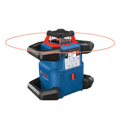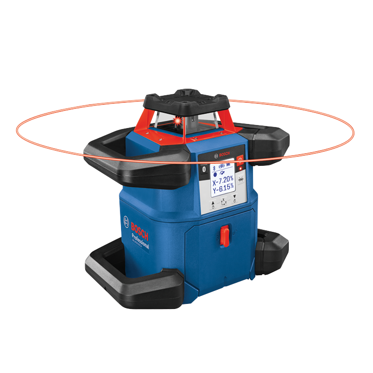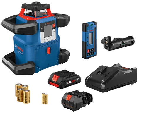 El láser giratorio horizontal conectado y autonivelador de 18 V REVOLVE4000 de Bosch con calibración realizada por el usuario uCAL constituye una solución integral para aplicaciones de nivelación en exteriores e interiores. Tiene una función Dual Dial-In Slope (doble cuadrante de inclinación) que permite el ajuste del ángulo de la pendiente en los ejes X e Y, para aplicaciones de nivelación. Este láser funciona con una batería Bosch CORE18V® de 4 Ah que proporciona un tiempo de ejecución prolongado. El láser giratorio es compatible con baterías de iones de litio CORE18V® de Bosch de 4 Ah y 8 Ah. También cuenta con un adaptador alcalino para usar cuatro celdas (D). El REVOLVE4000 está diseñado con una cubierta de protección y un diseño innovador de manija, y está construido según los estándares de protección contra el polvo y el agua IP68. Cuenta con conectividad Bluetooth® para vincularse a un dispositivo conectado a la aplicación Leveling Remote de Bosch. Esta aplicación controla el encendido/apagado, la función Dual Dial-In Slope (doble cuadrante de inclinación) y más. El láser giratorio cuenta con uCAL, para que el usuario realice la calibración con ayuda de una guía paso a paso del proceso. Esto evita el tiempo de inactividad de la herramienta y proporciona la confianza de que el láser es preciso. Aporta una precisión de ±1/16” a 100 ft y un alcance de hasta 4.000 ft con un receptor láser.